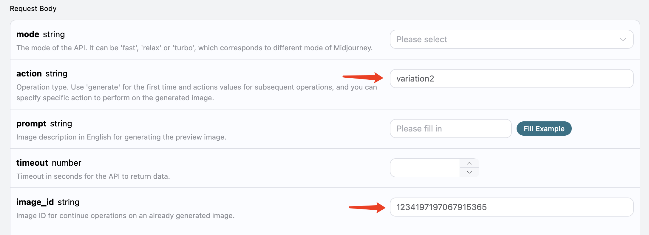 Next, we will try to perform further operations on the currently generated photo. For example, if we think the second image in the top right corner is quite good, but we want to make some transformation adjustments, we can further fill in the action as variation2 and pass the image_id:
