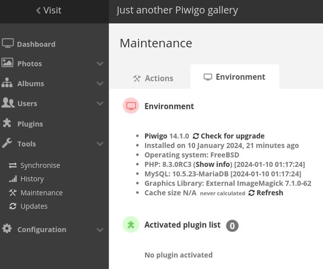 This is iocage plugin to create Piwigo 14.x, an open source photo gallery software for the web. Designed for organisations, teams and individuals. More details at http://piwigo.org