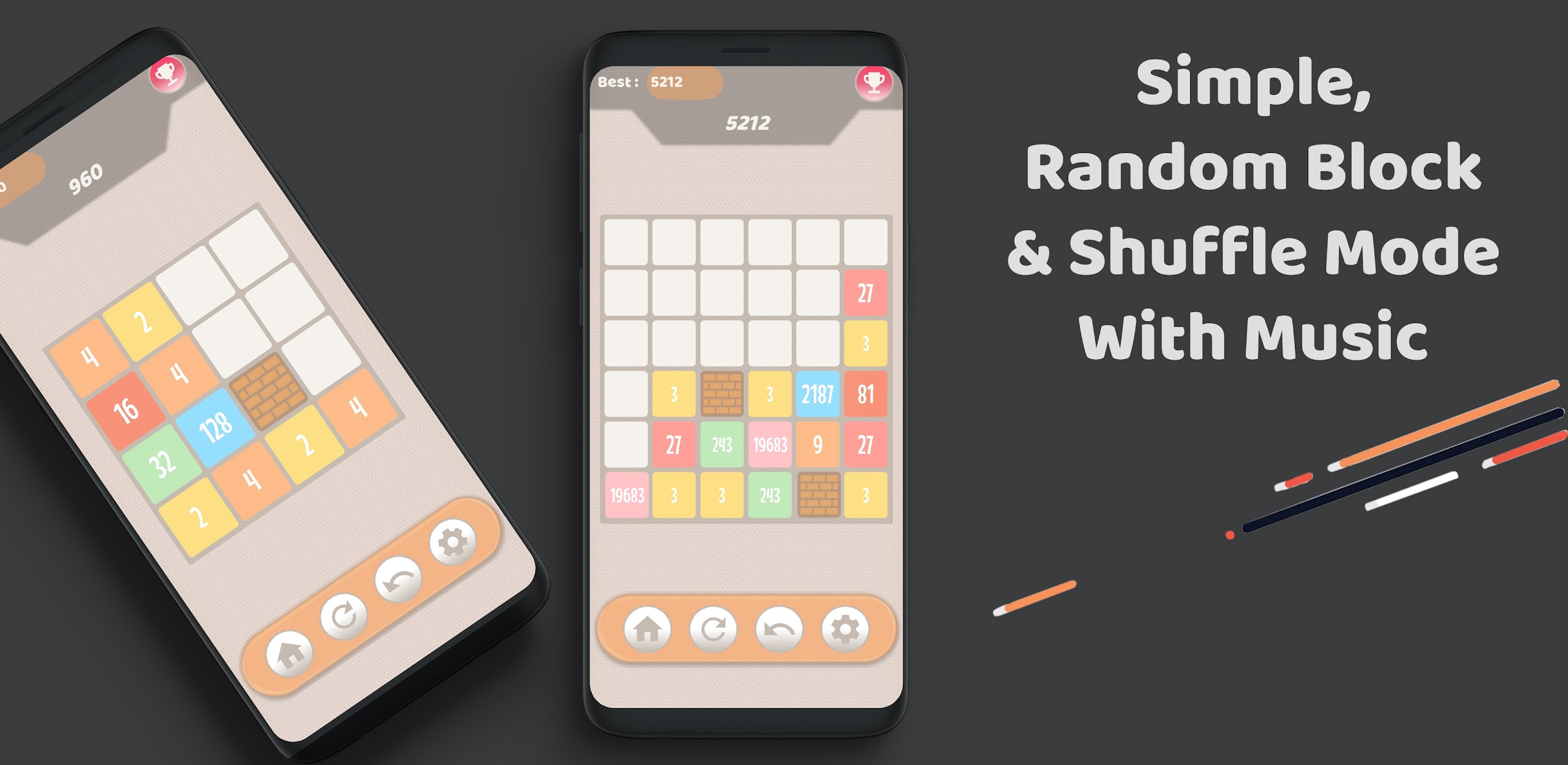 The good old classic 2048 with new features. Random Blocks will spawn in your Board. Your Board Knows how to Shuffle. Choose Different Exponents 2,3,4 and 5.
