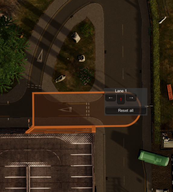 Added interface to reset lane arrows back to default. Ignores lanes with outgoing lane connections.