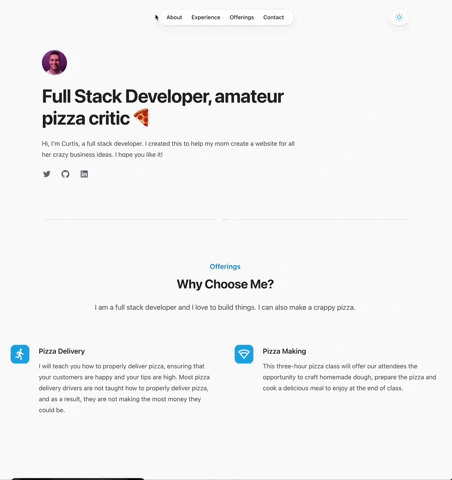 "Hi, I'm Curtis, a full stack developer. I created this to help my mom create a website for all her crazy business ideas. I hope you like it!",