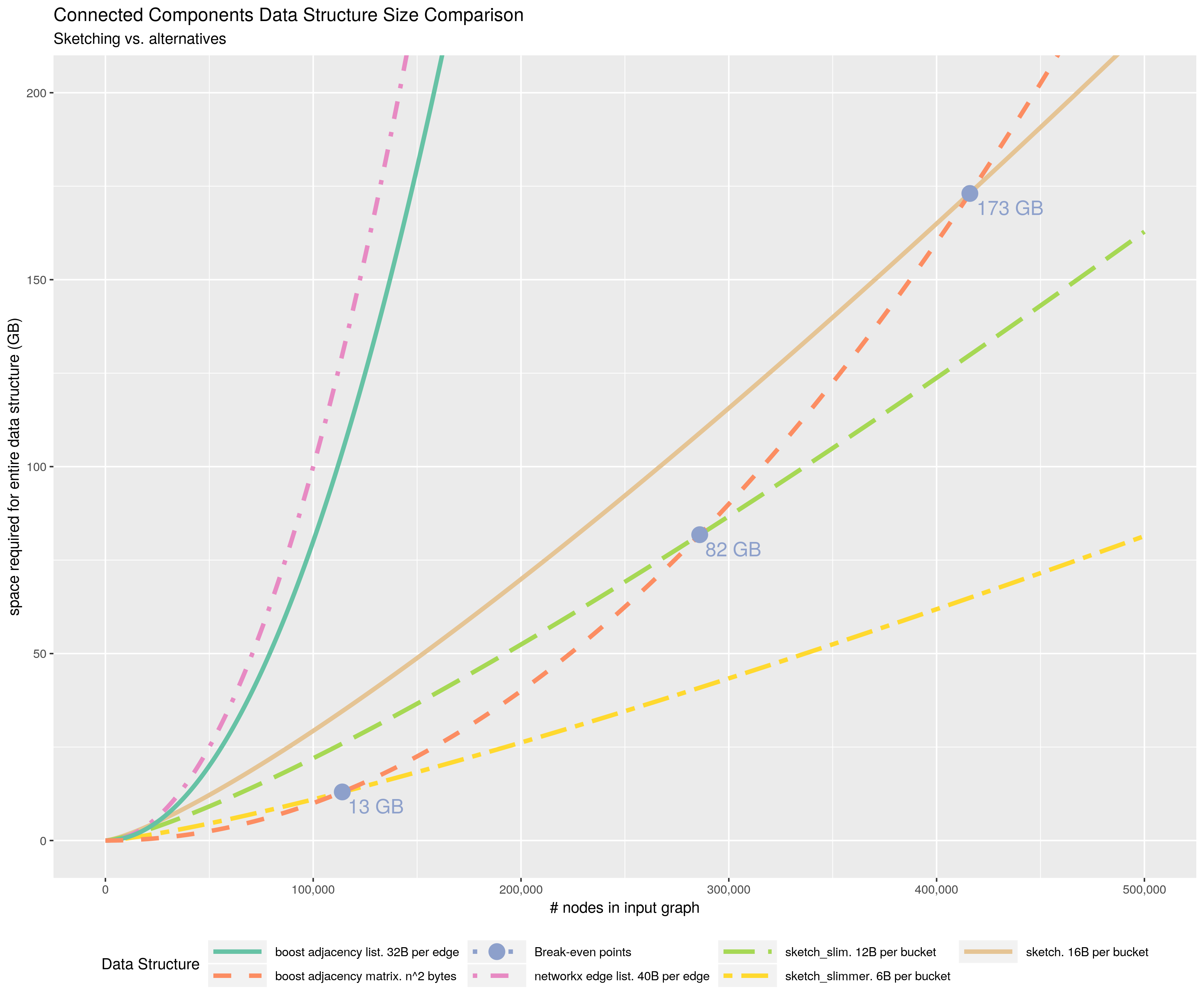 15000 nodes, 2.1x10^8 edge updates, with data structure size of 2.5GB