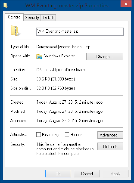 Unblock-File -Path "$env:UserProfile\Downloads\Uproot-master.zip"If you are using an older version of PowerShell you will have to unblock the file manually. Go to your Downloads folder and right-click Uproot-master.zip and select "Properties". On the general tab click Unblock and then click OK to close the dialog.