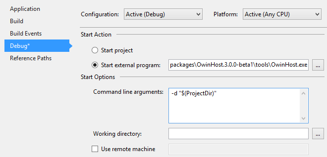 <StartProgram>$(SolutionDir)packages\OwinHost.3.0.0-beta1\tools\OwinHost.exe</StartProgram>