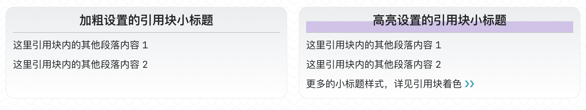 - 除首行加粗外,增加首行高亮方式启用引用块的「小标题」样式