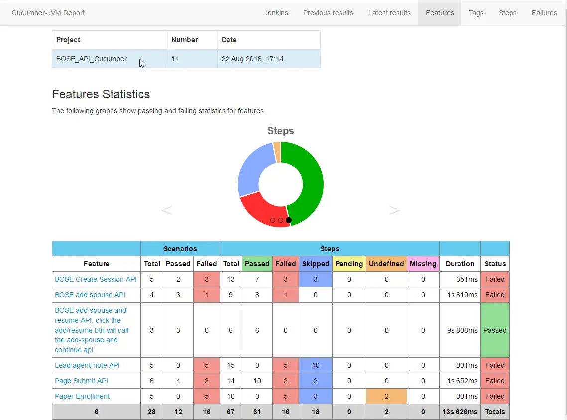 Cucumber-JVM reports 提供了非常漂亮的report,如下: