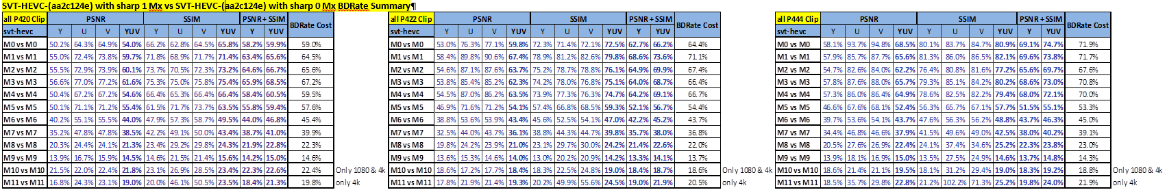 we found Quality PSNR/SSIM BDRate with setting “-sharp 1” have ~70% drop compared with setting “-sharp 0”.