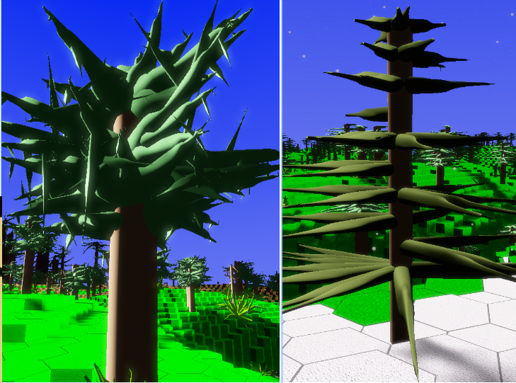 Everything you see is procedurally generated -- there are no static textures, meshes or worlds! A different seed will generate completely different textures, plants, stars and a different world. You can find more images further down.