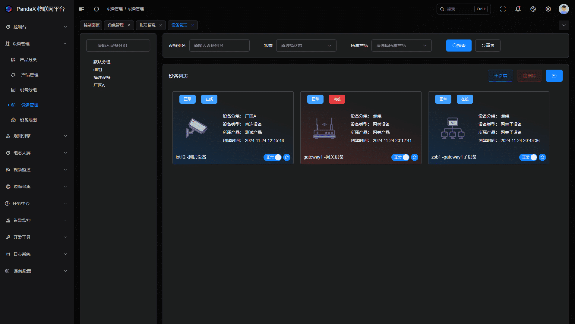 演示地址:https://iot.pandax.vip 帐号:admin 密码:123456