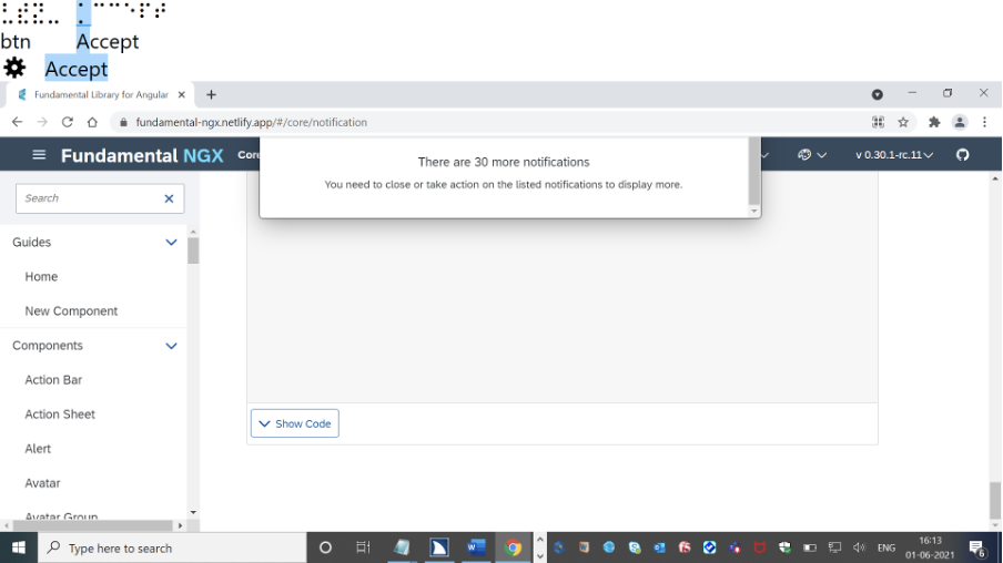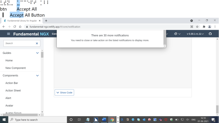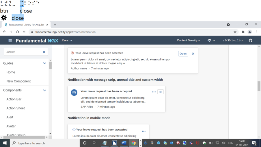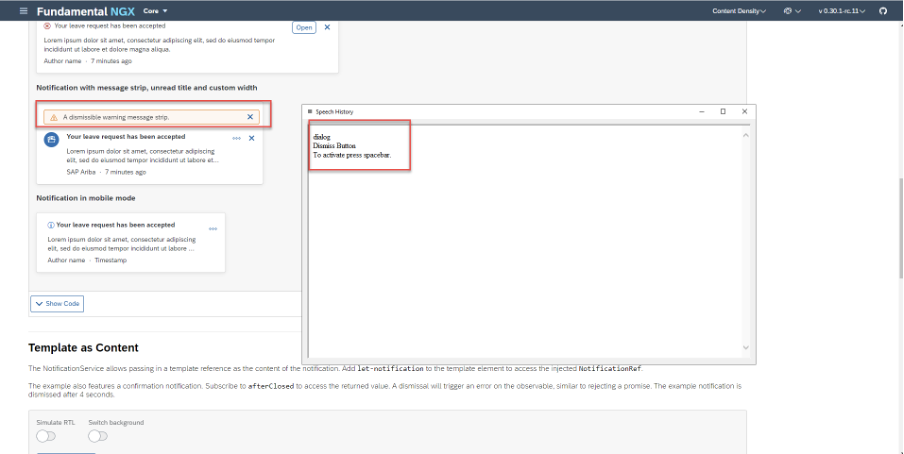 Accessibility: Notifications -Core Component (There are couple of accessibility issues found while testing, so i have attached error document for you reference.)