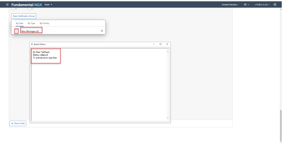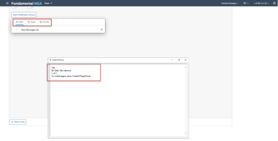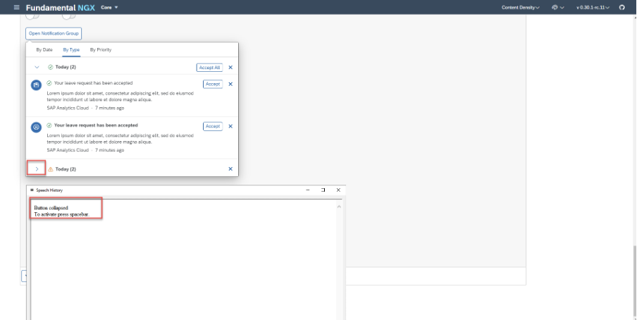 On activating the ‘Open Notification Group’ button, the tab such as ‘BY date’, ’By Type’ tab section, additional tab stop is provided to reach the selected tab section.