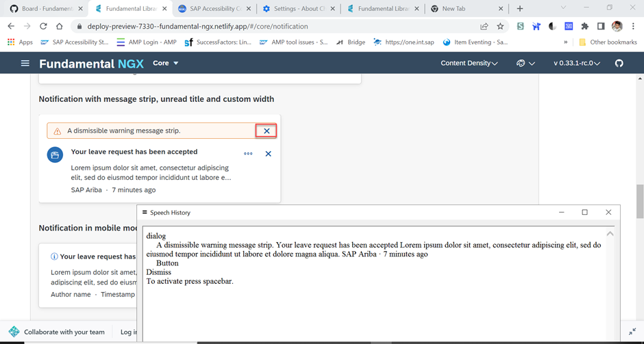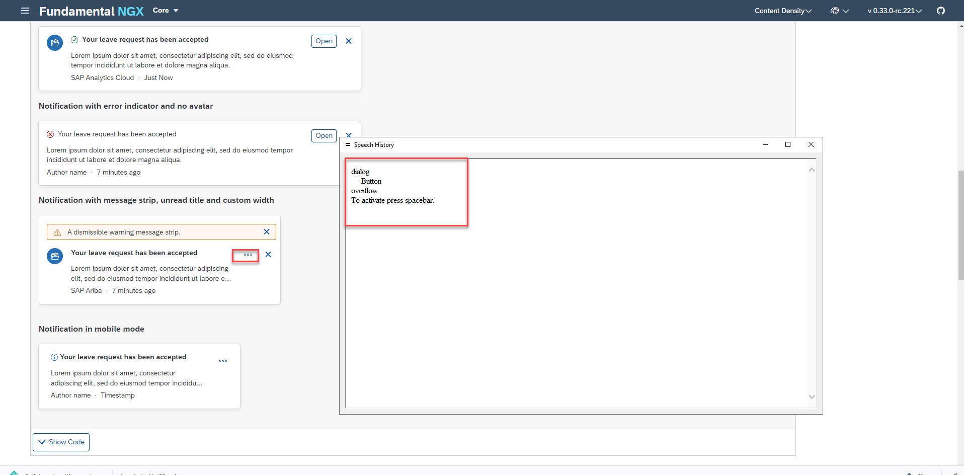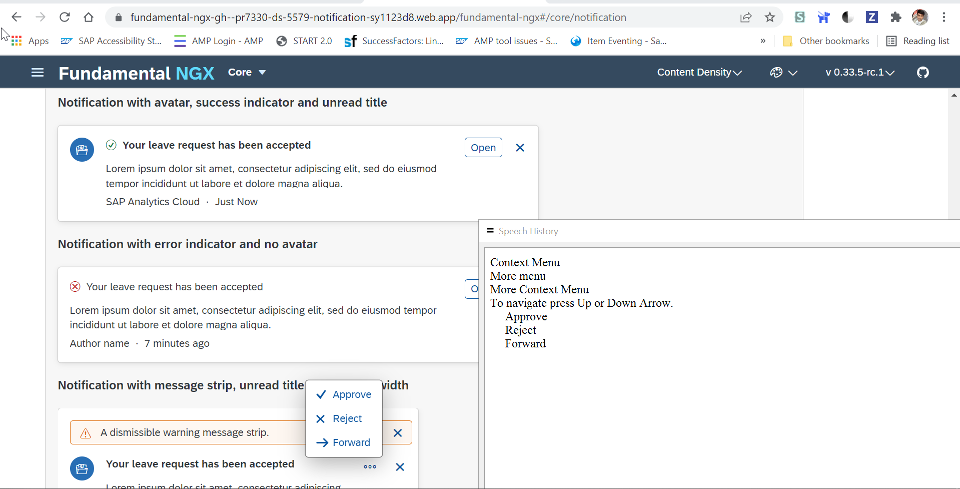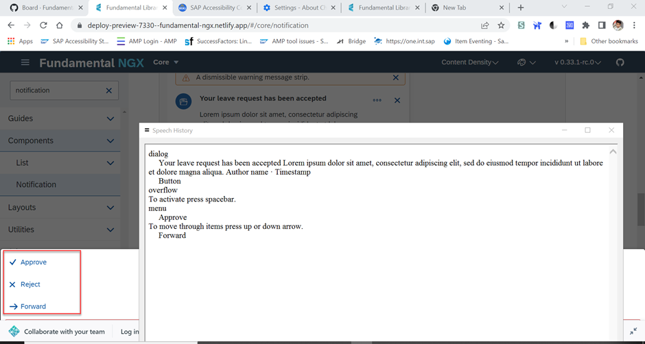 Issue 1: Fixed Issue 2: Fixed. Issue 3: Partially fixed. Observed Behavior: On accessing the 'More' button menu read button overflow conveying the wrong information. Issue 5: Not fixed Issue 6: Issue not reproducible Issue 7: Fixed Issue 8: Observed behavior: On activating the button, the dialog button name is read first followed by the dialog name. Observed Behavior: Issue 11: FIxed Issue 12: Known JAWS issue. Issue 13: Fixed Issue 14: Fixed Issue 15: Not reproducible. Retest details: |