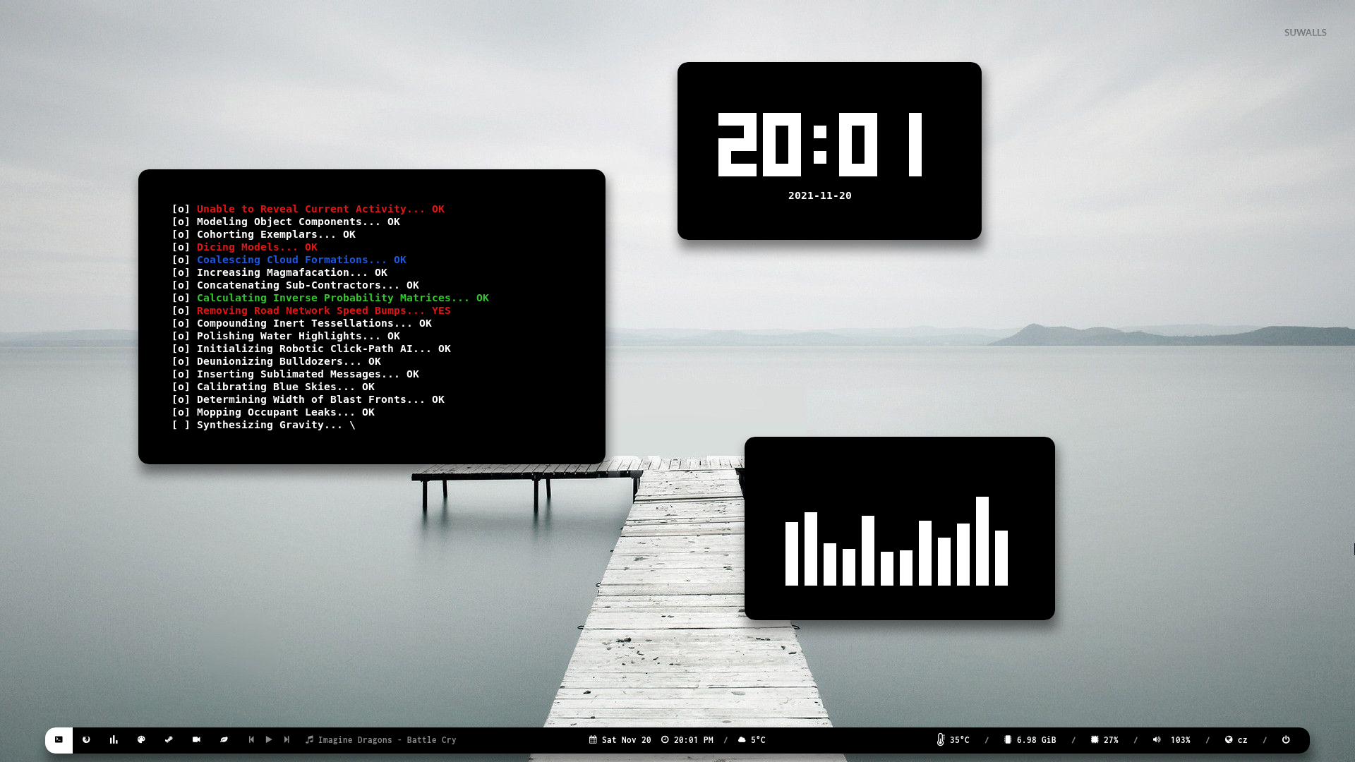 - Also polybar might not work for you out of a box, make sure the screen output is set to your current one