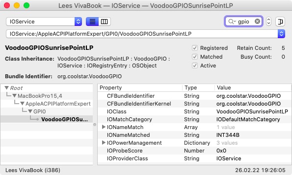 Probably not required but I'll attach anyway (also so you can compare with naveenkrdy's debug files once he provides them): VoodooI2C Debug 97d5acd RC4.txz.zip I'll boot/ reboot C & B.S. & M now several times to see if no KP/ booting is stable in all 3 OS. Also verified GPIO in Monterey & Catalina, after boot and after wake (all the same): and from log: @naveenkrdy again, please: which touchpad is in your Dell - also ELAN 1300 or 1200, or a different one? [EDIT]: also all fine in Big Sur (after boot, after wake, GPIO) |