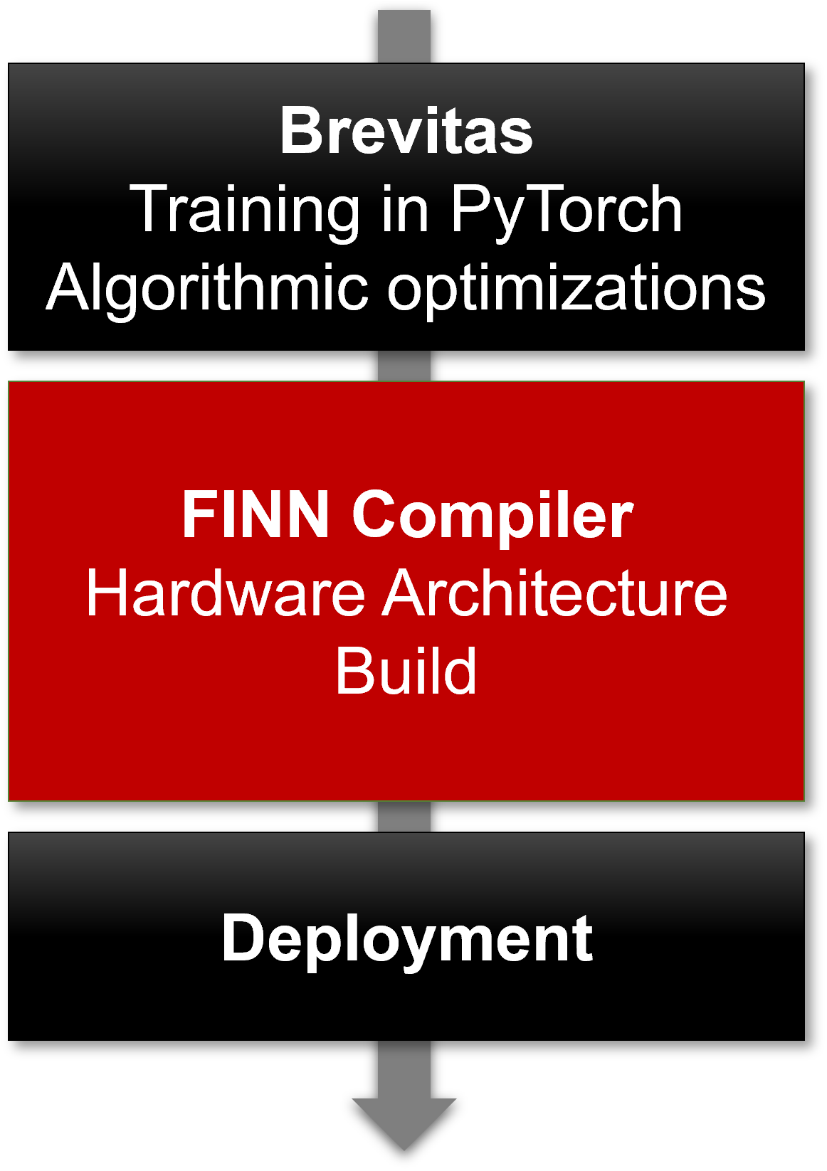 FINN is an experimental framework from Integrated Communications and AI Lab of AMD Research & Advanced Development to explore deep neural network inference on FPGAs. It specifically targets quantized neural networks, with emphasis on generating dataflow-style architectures customized for each network. The resulting FPGA accelerators are highly efficient and can yield high throughput and low latency. The framework is fully open-source in order to give a higher degree of flexibility, and is intended to enable neural network research spanning several layers of the software/hardware abstraction stack.