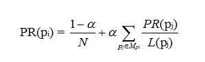 一般情况下,一个网页的PageRank值(PR)计算公式如下所示:
