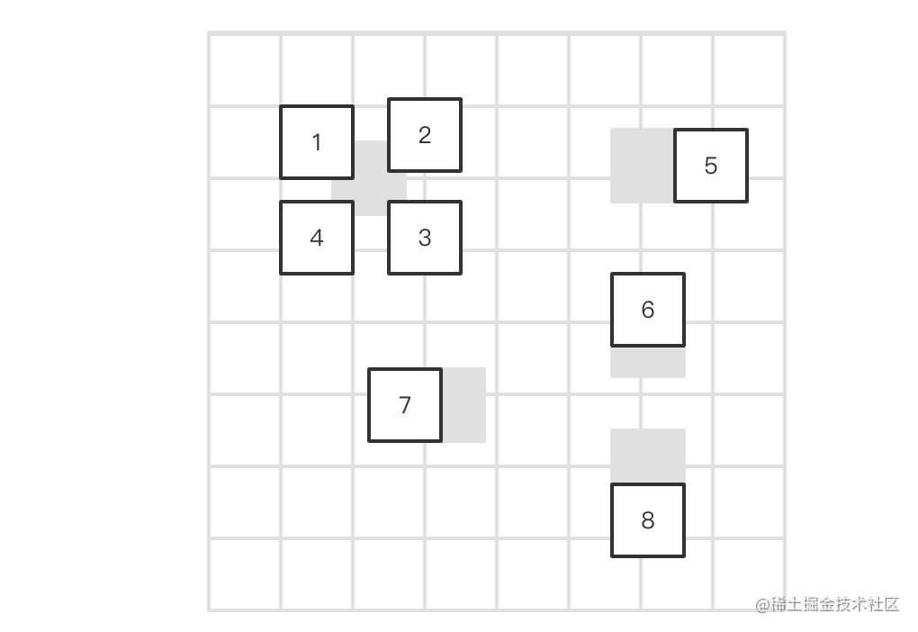 const offset = defaultOffsetValue[Math.floor(defaultOffsetValueLength * Math.random())];接下来就是生成行列,为了不让卡片太飘逸的生成位置,决定固定列数8 * 8