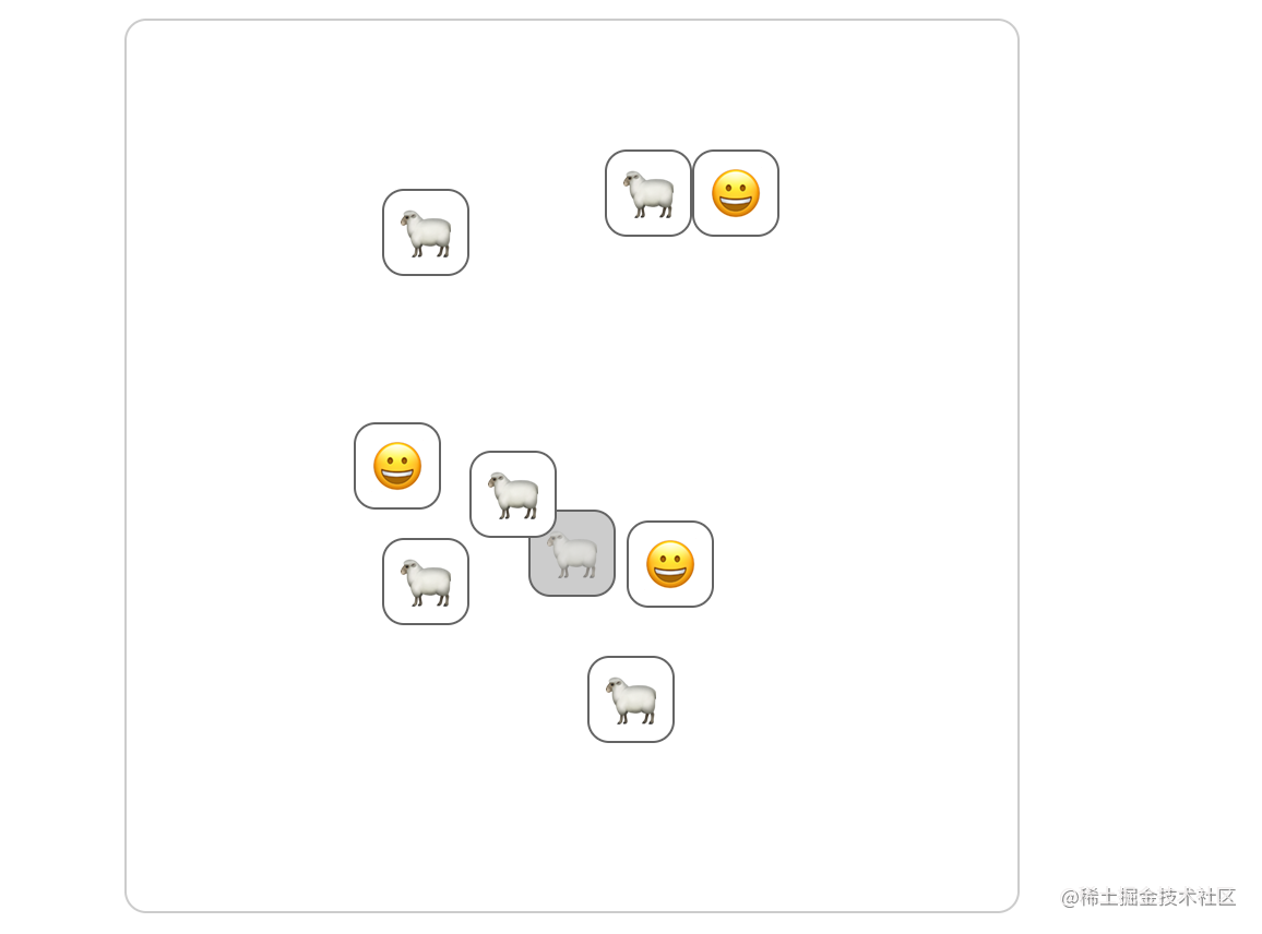 const defaultIcons = ['🐑','😀', '😭', '😂', '😍', '😎', '😘', '😳', '😇', '🤪'];默认用了10个图标,目前设置是第一关选择两个表情,第二关四个表情,以此类推。。。。。