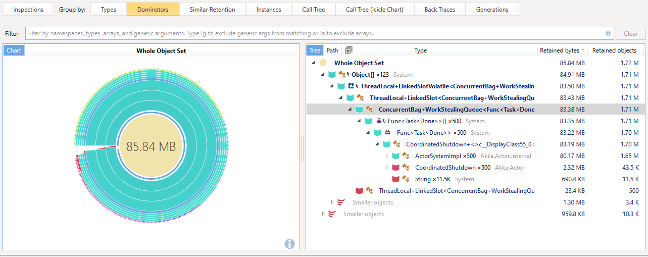This is the code I use to test for the memory leak, you will need JetBrains dotMemory and add the using Akka.Actor;