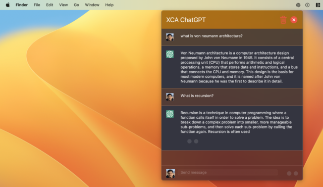 let response = try await api.sendMessage(text: "What is ChatGPT?",