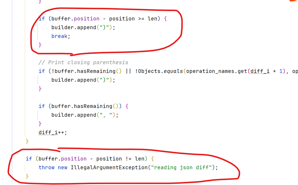 进行判断,会导致解析到溢出的部分,也就是不属于JSON部分更新的内容的部分。超解析。在本来循环应该结束的位置没有停止,buffer过消费。实际上应该对buffer解析到