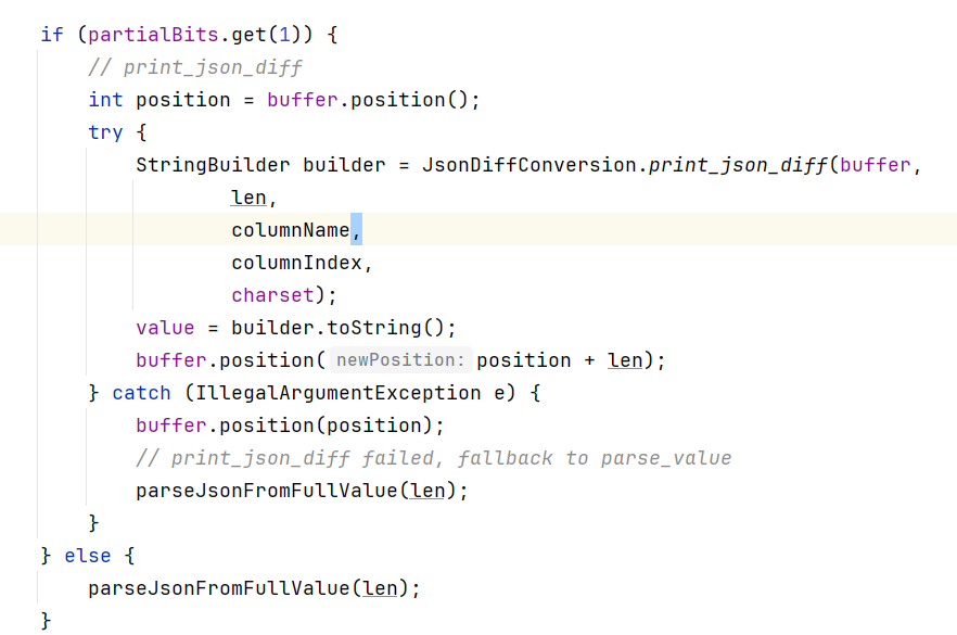 与canal中com.taobao.tddl.dbsync.binlog.JsonDiffConversion#print_json_diff(com.taobao.tddl.dbsync.binlog.LogBuffer, long, java.lang.String, int, java.nio.charset.Charset)