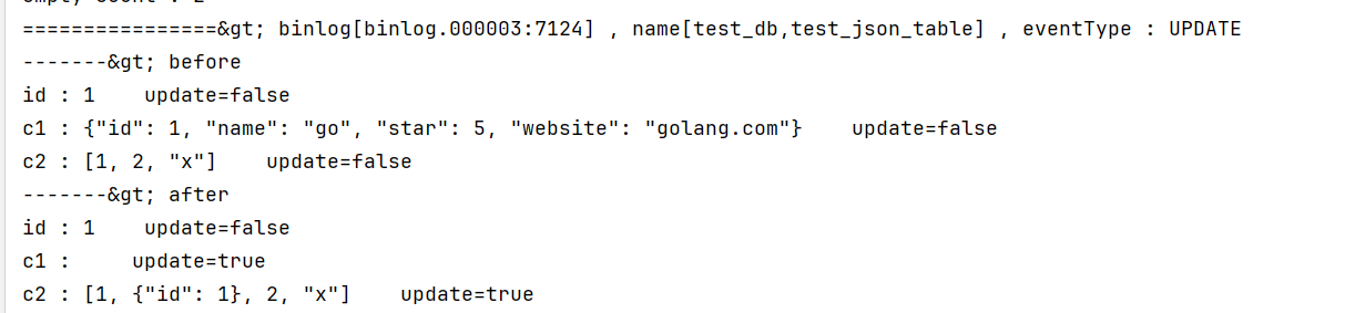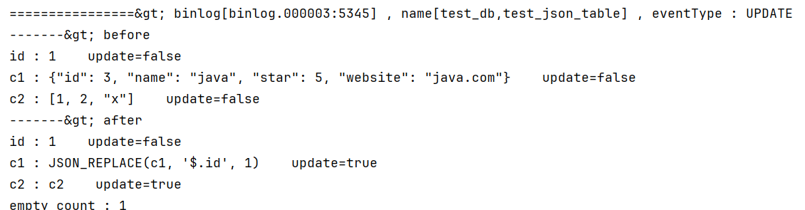 ,但是after-image中的json字段的binlog记录仍然是完整的(主要出现在全量替换等情况下),不使用json函数进行表达,因此需要返回原有的完整解析的逻辑。需要注意重新解析时需要做回退位点