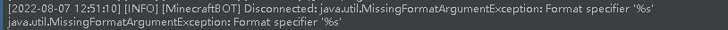 If someone says contains % content, the BOT will disconnect Then an error: "Disconnected: Java. Util. UnknownFormatConversionException: Conversion = '%' java.util.UnknownFormatConversionException: Conversion = '%'"