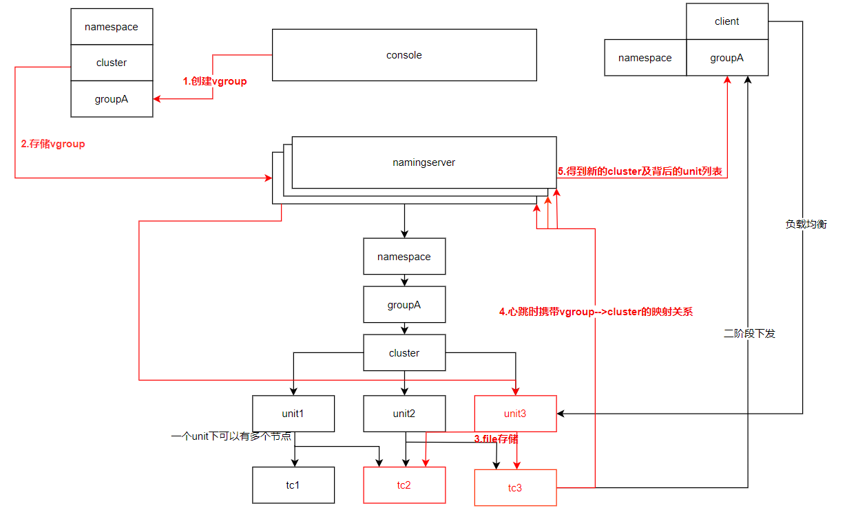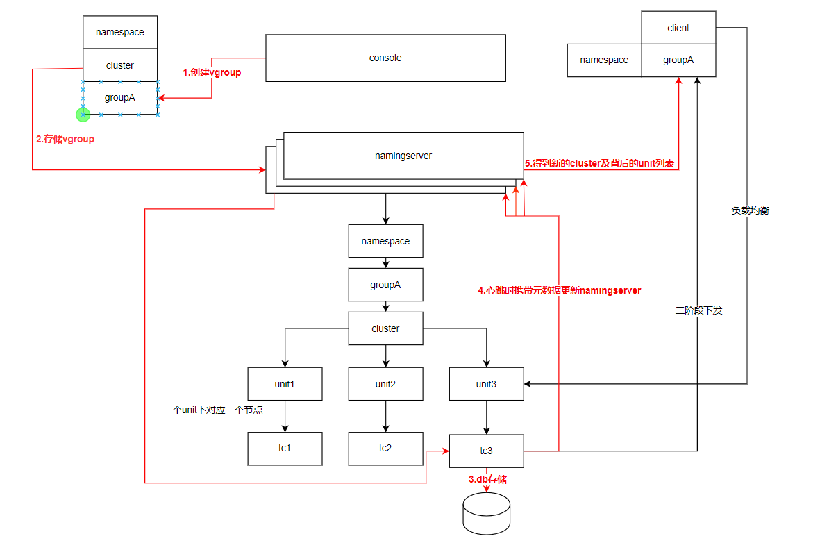 3.tc节点在心跳的时候将vgroup->cluster的映射关系更新到namingserver