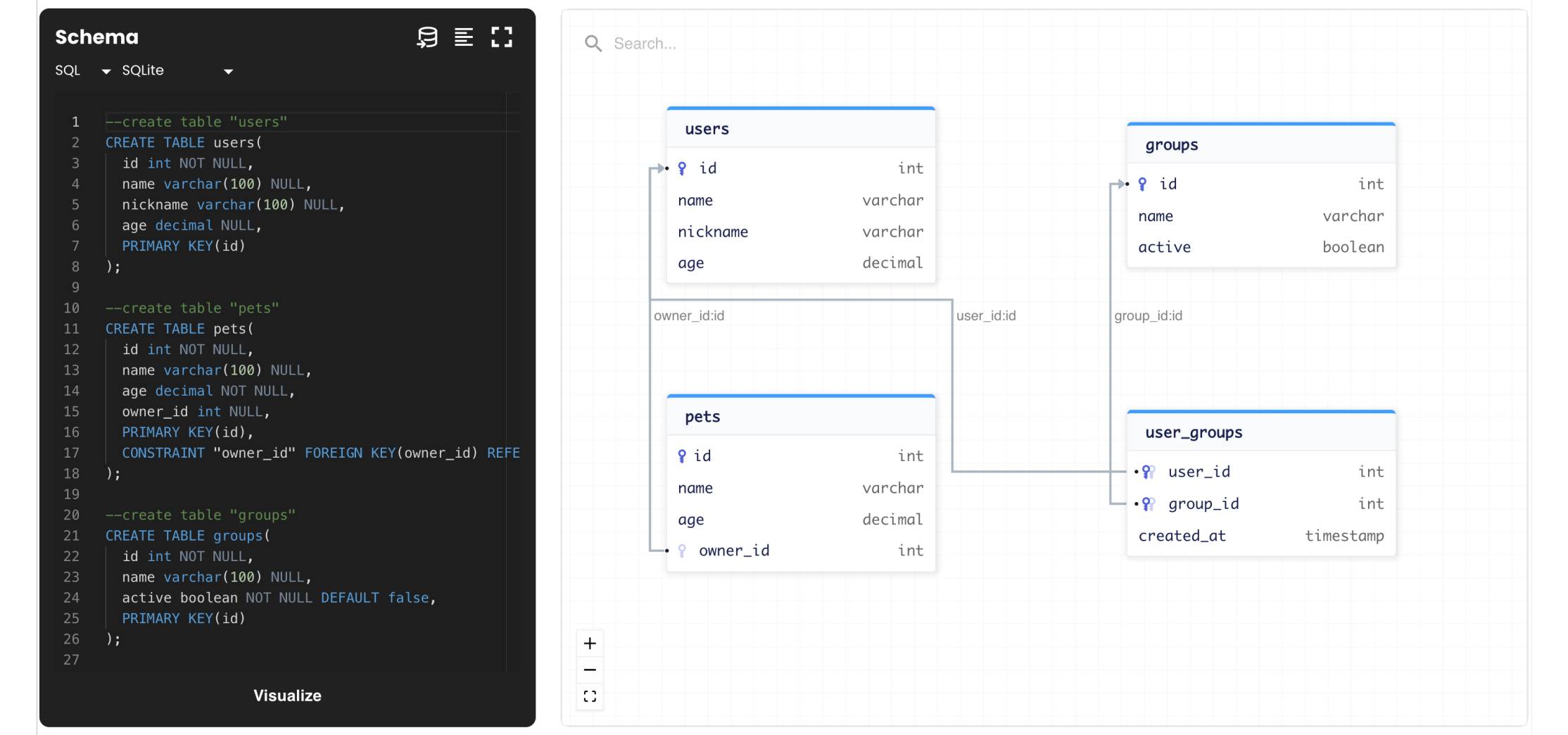 python manage.py djangoviz'Here is a public link to your schema visualization: https://gh.atlasgo.cloud/explore/13b2e709'This command will create a visual representation of your projects database schema using Atlas Cloud. You can now easily view and explore the relationships between your models.