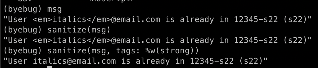 it seems pointless to call sanitize() after escape_html(). sanitize won't find anything to filter because escape_html has already encoded all the tag metacharacters.