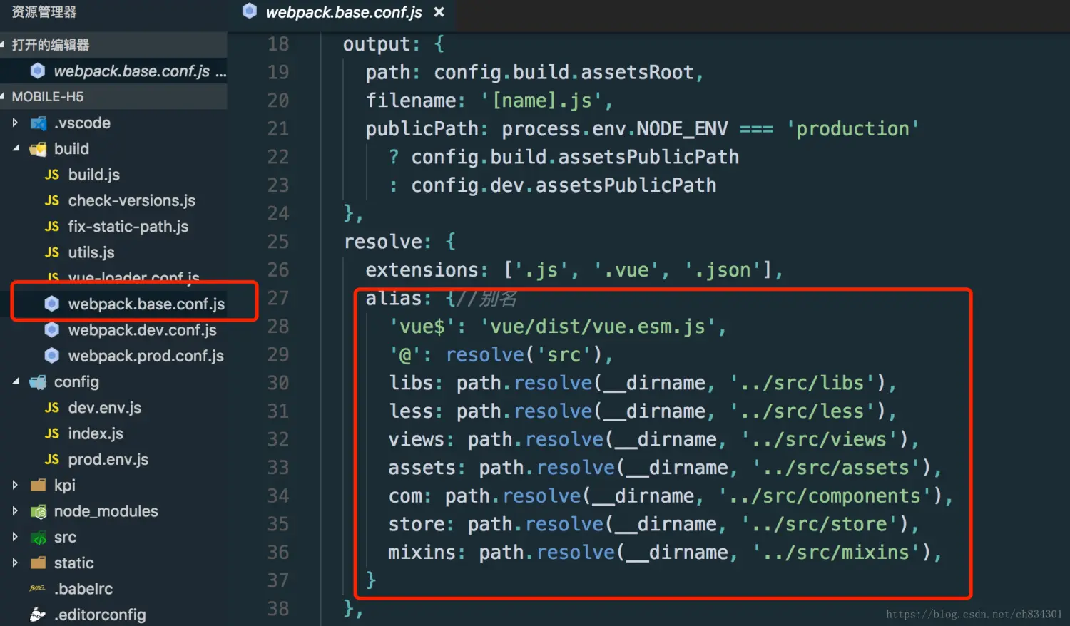 c. 添加别名,在其他地方引入文件时,可以省略部分路径的书写