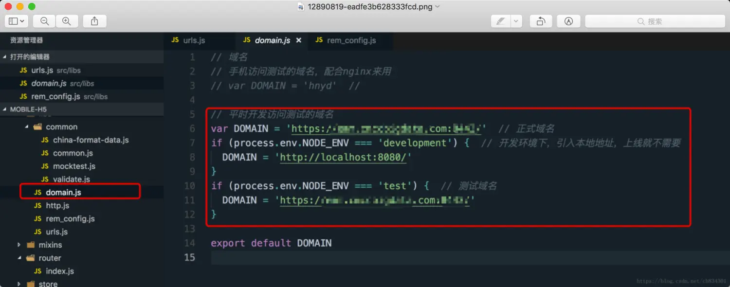 domain.js 是域名的配置, 只要统一配置一项即可,方便。