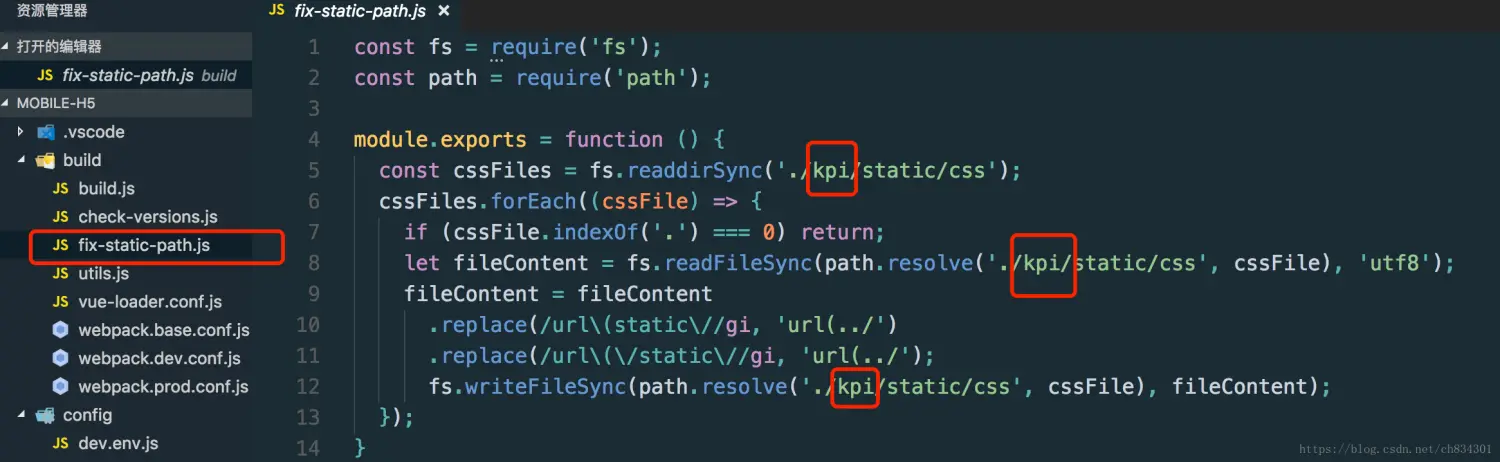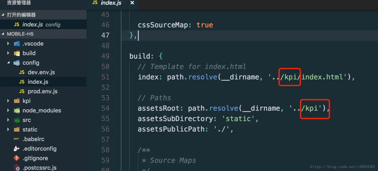 b. 把打包的目录修改成生产环境需要的目录 kpi。