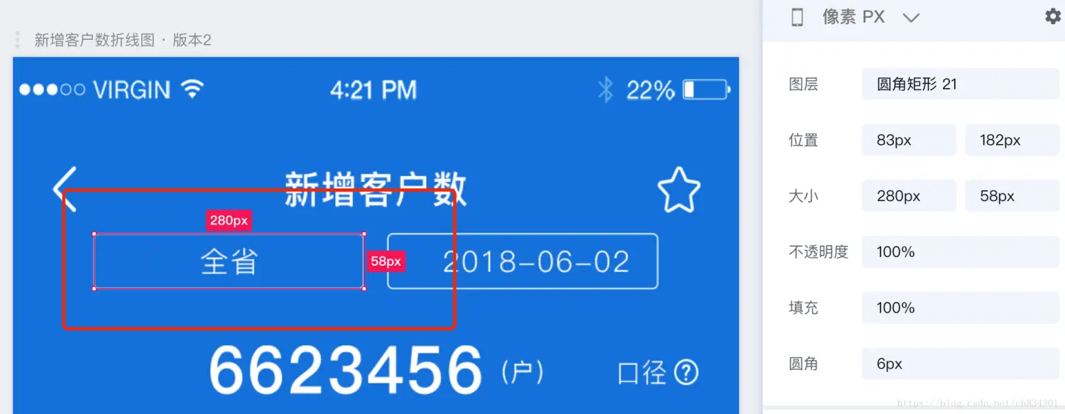 比如上图的,全省的宽 280px ,高 58px , 正常开发下,程序的css上需要写