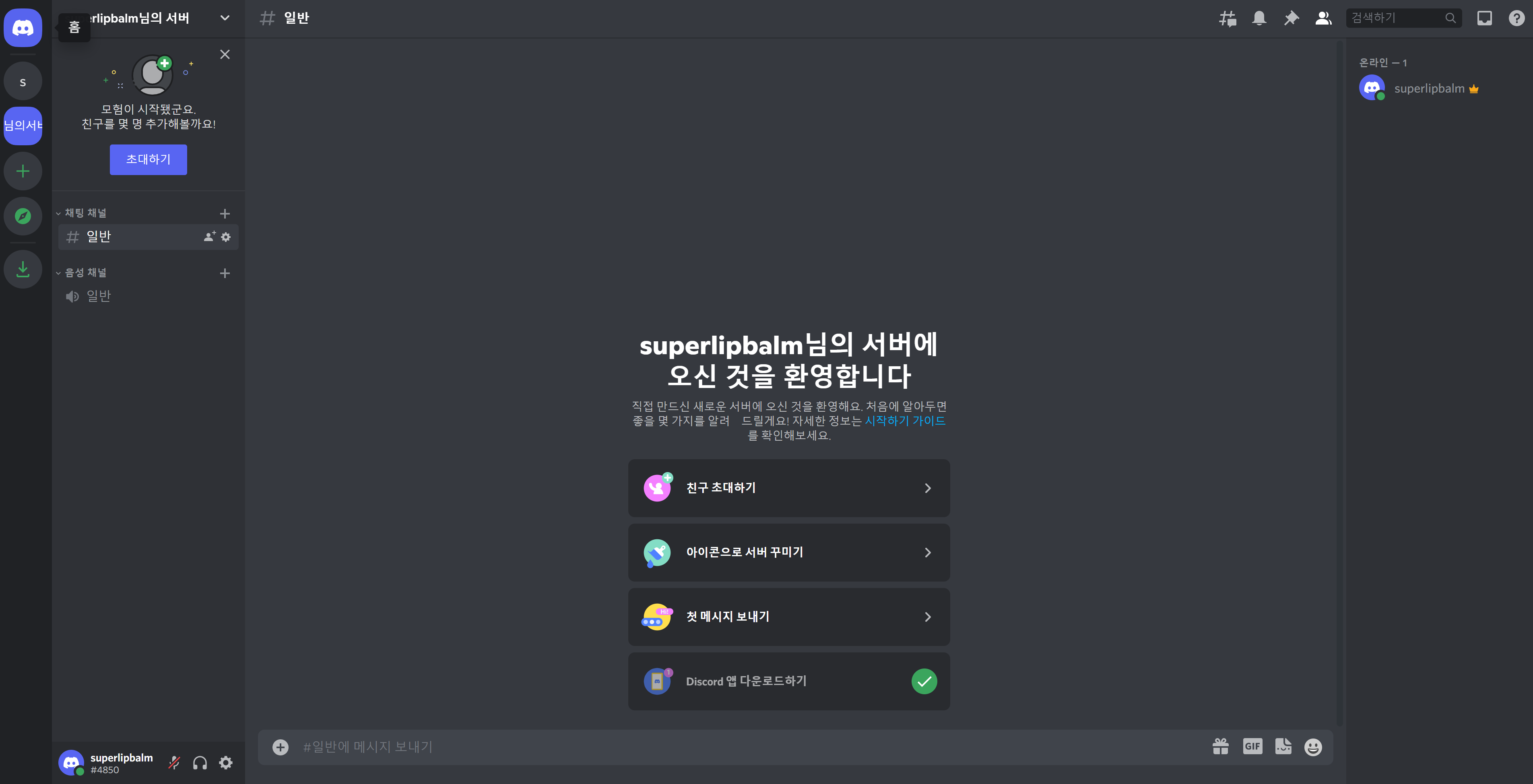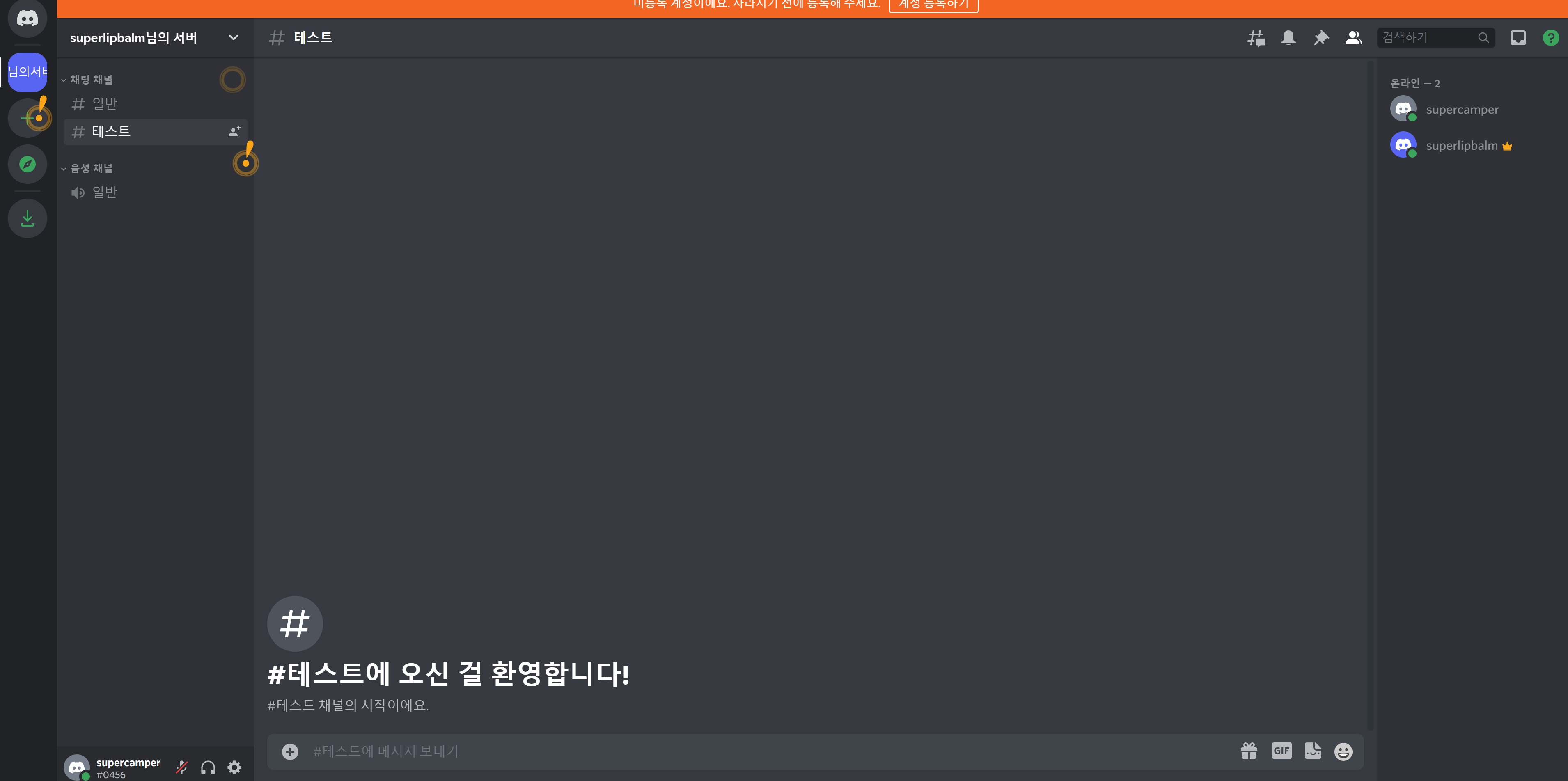 - 디스코드는 줌과 달리 음성채널 마다 채팅이 지원되지는 않음