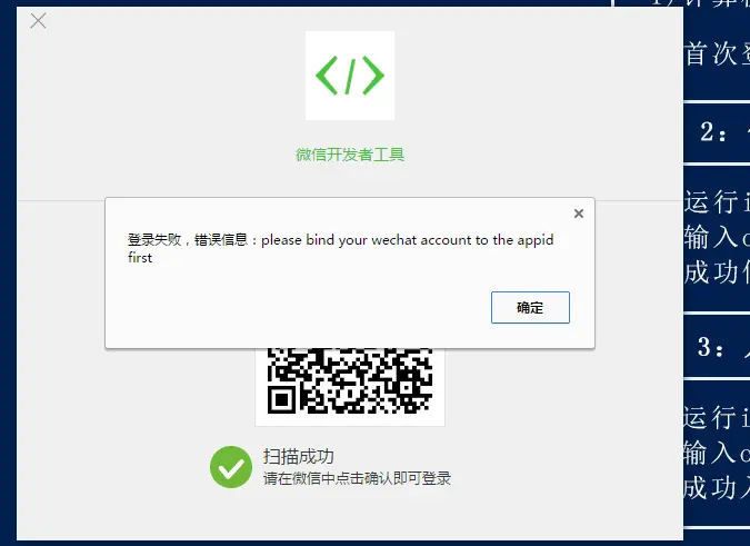 错误1,打开IDE时appid无效,如图.解决方案:0.7版本负责且仅负责扫描登录,然后打开0.9版本