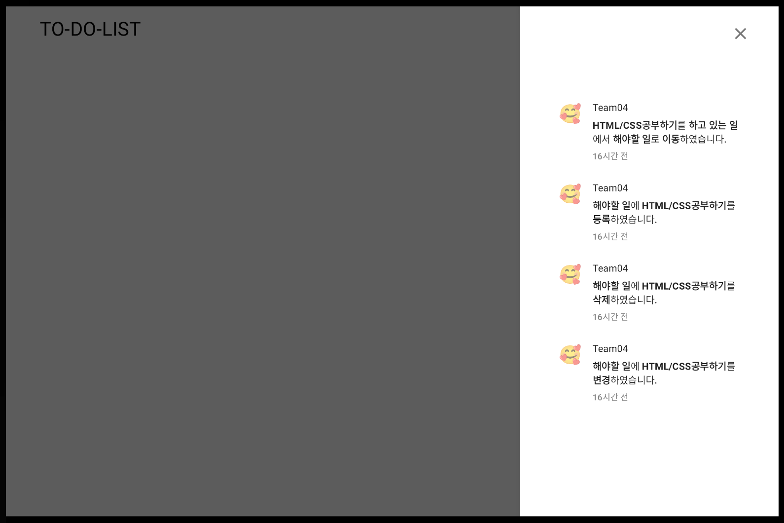 * 카드 등록 - 새로운 카드 등록 기능 구현 (#29) * feat: todolist column과 task를 스크립트로 렌더링 list view와 task view를 클래스로 생성하고 db.json의 todolist를 하나의 배열로 묶음 * feat: column add button 칼럼의 추가버튼으로 등록카드 생성,삭제 기능 구현 * feat: task cancle button 등록카드의 취소버튼을 누르면 등록카드를 삭제하는 기능 구현 * refactor: 메인 렌더링 영역을 list에서 main으로 수정 entry point에서 mainInit의 parent를 list에서 main으로 리팩토링 * refactor: input event를 메인에서 task 모듈로 분리 입력창을 autoResize하는 이벤트를 task 모듈로 분리함 * rename: index.js * 카드 등록 - 새로운 카드 입력창 생성 기능 구현(1) (#32) * feat: 등록버튼 활성화 기능 구현 등록카드에 내용을 입력하면 등록버튼을 활성화, 입력할 수 있는 최대 글자수는 500자 * refactor: registration activation을 todoListStore에서 관리 activiation관리를 task에서 todoListStore로 변경 * 카드 이동 - 드래그앤드랍으로 카드 이동 구현(1) (#33) * design: task cursor 변경 * task -> grab * delete button -> pointer * feat: mousedown 시 copyTask 생성 기능 구현 * Task 에 mousedown 이벤트 발생 시 드래그 할 복사본 Task 요소를 생성하는 기능 구현 * feat: index에서 todoList render 후에 dragEvent 등록 기능 구현 * 카드 등록 기능 구현 된 로직에 dragEvent 설정 로직 병합 * 그 외 자잘한 수정 포함 * feat: task 요소 좌표 설정 기능 구현 * 클릭 이벤트가 발생한 좌표로 task 요소의 좌표를 설정하는 로직 구현 * feat: drag 기능 구현 * body에 mousemove 이벤트 등록해서 이벤트가 발생할때마다 해당 이벤트의 좌표로 task 요소를 이동되도록 구현 * feat: mouseup 이벤트 발생 시 드랍 & 복사 task 요소 삭제 기능 구현 * 복사한 task 요소에 mouseup 이벤트 설정 * Design: column task list height, hidden 클래스 추가 * Design: 잔상 처리용 클래스 blur 추가 * feat: drag and drop 기능 구현 * 선택 된 origin task item , 드래그 되고 있는 task item, 이동 된 task item 3개의 요소를 활용 * remove: todolistStore.js * rename: todolistStore -> todoListStore * 카드 이동 - 드래그앤드랍으로 카드 이동 구현(2) (#34) * design: task cursor 변경 * task -> grab * delete button -> pointer * feat: mousedown 시 copyTask 생성 기능 구현 * Task 에 mousedown 이벤트 발생 시 드래그 할 복사본 Task 요소를 생성하는 기능 구현 * feat: index에서 todoList render 후에 dragEvent 등록 기능 구현 * 카드 등록 기능 구현 된 로직에 dragEvent 설정 로직 병합 * 그 외 자잘한 수정 포함 * feat: task 요소 좌표 설정 기능 구현 * 클릭 이벤트가 발생한 좌표로 task 요소의 좌표를 설정하는 로직 구현 * feat: drag 기능 구현 * body에 mousemove 이벤트 등록해서 이벤트가 발생할때마다 해당 이벤트의 좌표로 task 요소를 이동되도록 구현 * feat: mouseup 이벤트 발생 시 드랍 & 복사 task 요소 삭제 기능 구현 * 복사한 task 요소에 mouseup 이벤트 설정 * Design: column task list height, hidden 클래스 추가 * Design: 잔상 처리용 클래스 blur 추가 * feat: drag and drop 기능 구현 * 선택 된 origin task item , 드래그 되고 있는 task item, 이동 된 task item 3개의 요소를 활용 * remove: todolistStore.js * rename: todolistStore -> todoListStore * feat: set drag and drop event * 카드 등록 - 새로운 카드 입력창 생성 기능 구현(2) (#35) * feat: 등록버튼 활성화 기능 구현 등록카드에 내용을 입력하면 등록버튼을 활성화, 입력할 수 있는 최대 글자수는 500자 * refactor: registration activation을 todoListStore에서 관리 activiation관리를 task에서 todoListStore로 변경 * 카드 등록 - 새로운 카드 입력창 생성 기능 구현(1) (#30) * [team-19] Todo-list 1주차 #1 코드리뷰 요청 (#32) * Update issue templates * docs: Update Readme Readme 1차 업데이트 * docs: Update Readme 기술 스택 추가 * Design: reset scss 적용 * HTML, CSS 작업 - Header, Sidebar (#11) * design: header HTML markup Related to: #8 * design: header css style Related to: #8 * design: sidebar HTML markup Related to: #8 * design: sidebar css style Related to: #8 * 메뉴 - 우측 히든 레이어 생성, 애니메이션 구현 (#12) * feat: sidebar 메뉴 버튼 사이드바 메뉴 버튼 클릭시 사이드바 숨김,보임 기능 구현 Related to: #10 * design: sidebar 애니메이션 왼쪽방향으로 나타나고 오른쪽 방향으로 숨겨지는 애니메이션 구현 Related to: #10 * 메뉴 - 우측 히든 레이어 생성, 애니메이션 구현 (#13) * feat: sidebar 메뉴 버튼 사이드바 메뉴 버튼 클릭시 사이드바 숨김,보임 기능 구현 Related to: #10 * design: sidebar 애니메이션 왼쪽방향으로 나타나고 오른쪽 방향으로 숨겨지는 애니메이션 구현 Related to: #10 * feat: action분리 action에 따라 sidebar 리스트의 comment를 다르게 출력함 Related to: #10 * feat: timestamp 기능 구현 현재 시간을 기준으로 투두리스트 작성 및 변경 시간을 보여주는 timestamp 구현 Related to: #10 * feat: 을/를, 으로/로 구분 단어의 마지막 글자 종성에 따라 모음을 다르게 렌더하는 기능 구현 Related to: #10 * HTML, CSS 작업 - Card List (#14) * design: main column list html markup Related to : #9 * move: svg file move to public/svg * 기존 public 에 있던 svg 파일을 svg 폴더 내로 이동 * icon-add.svg 파일 추가 Related to : #9 * Design: font mixin 함수 추가 Related to : #9 * design: column list scss style 작성 Related to: #9 * design: column task list scss style 작성 Related to: #9 * design: task commnet padding 을