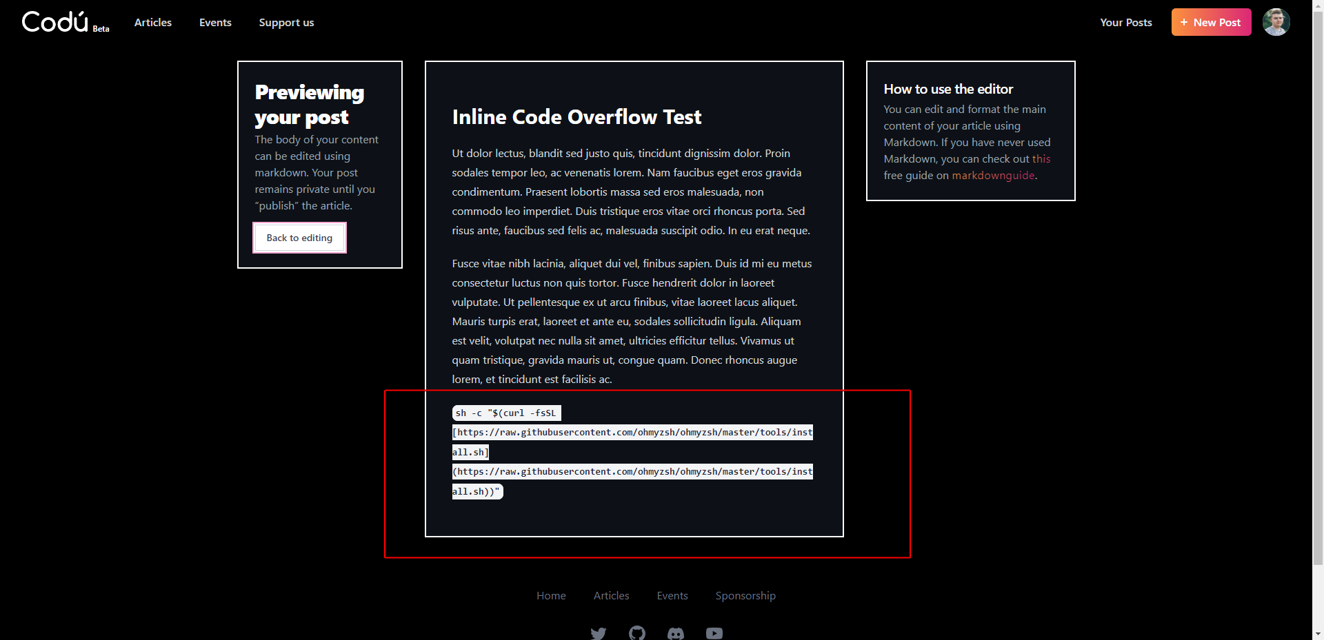 If a user inputted a long inline code they would of saw it overflowing outside of the the preview container/box.