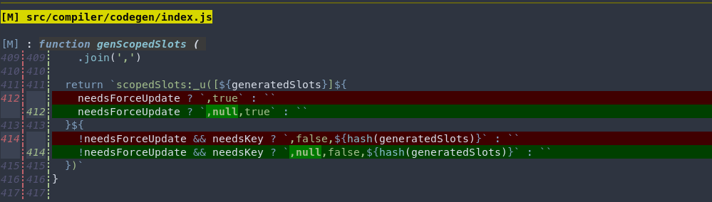 As you can see, both file-modified-label (it is set to [M] in this theme) and a : are printed before the hunk header, even though hyperlinks are off. The issue persists when hyperlinks are turned on, even though this bug was supposed to be fixed by #650.