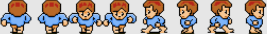 you'll see Gary in mid-stride facing right. At frame 215, they're in a standing