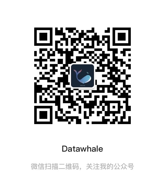 扫描下方二维码,或关注公众号「Datawhale」,然后回复关键词“钥匙书”,即可加入“钥匙书读者交流群”