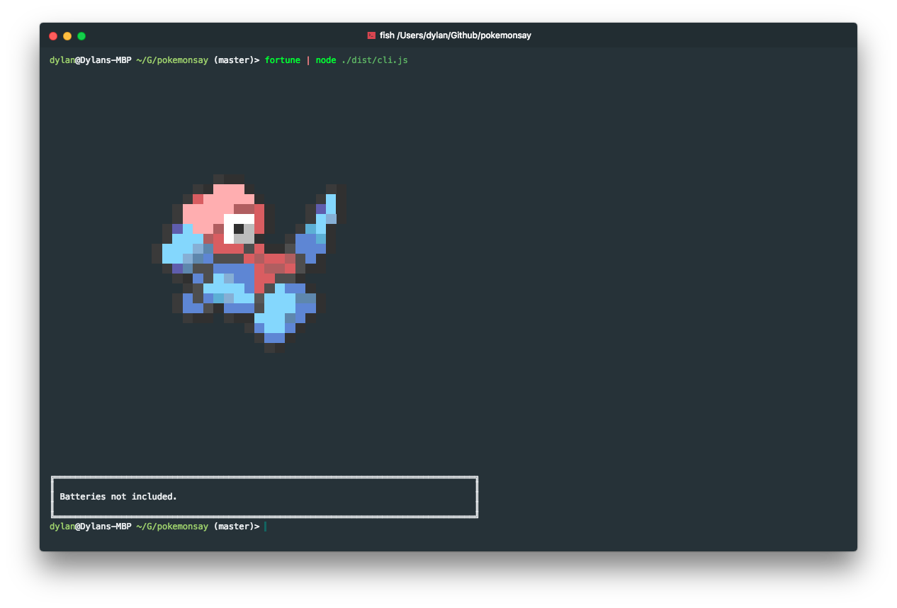 Pipe to pokemonsay to get a random Pokemon with the piped message below it.