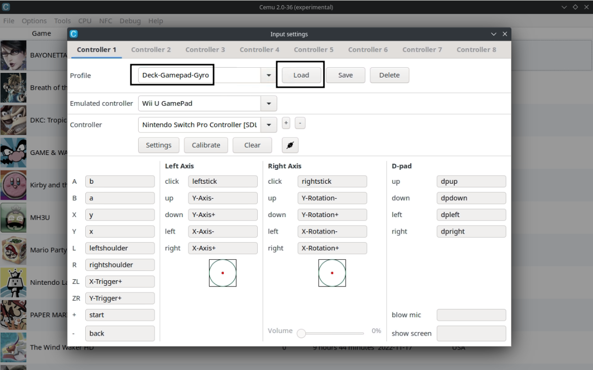 To switch between your new controller profile and the Steam Deck controller profile, open Cemu and open the input settings, select your preferred option in the Profile drop-down menu and click Load.