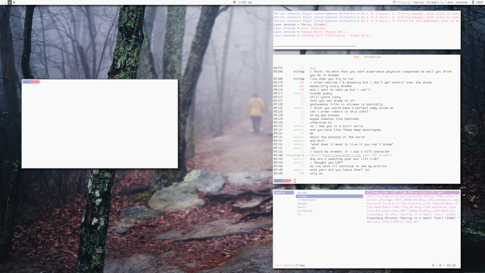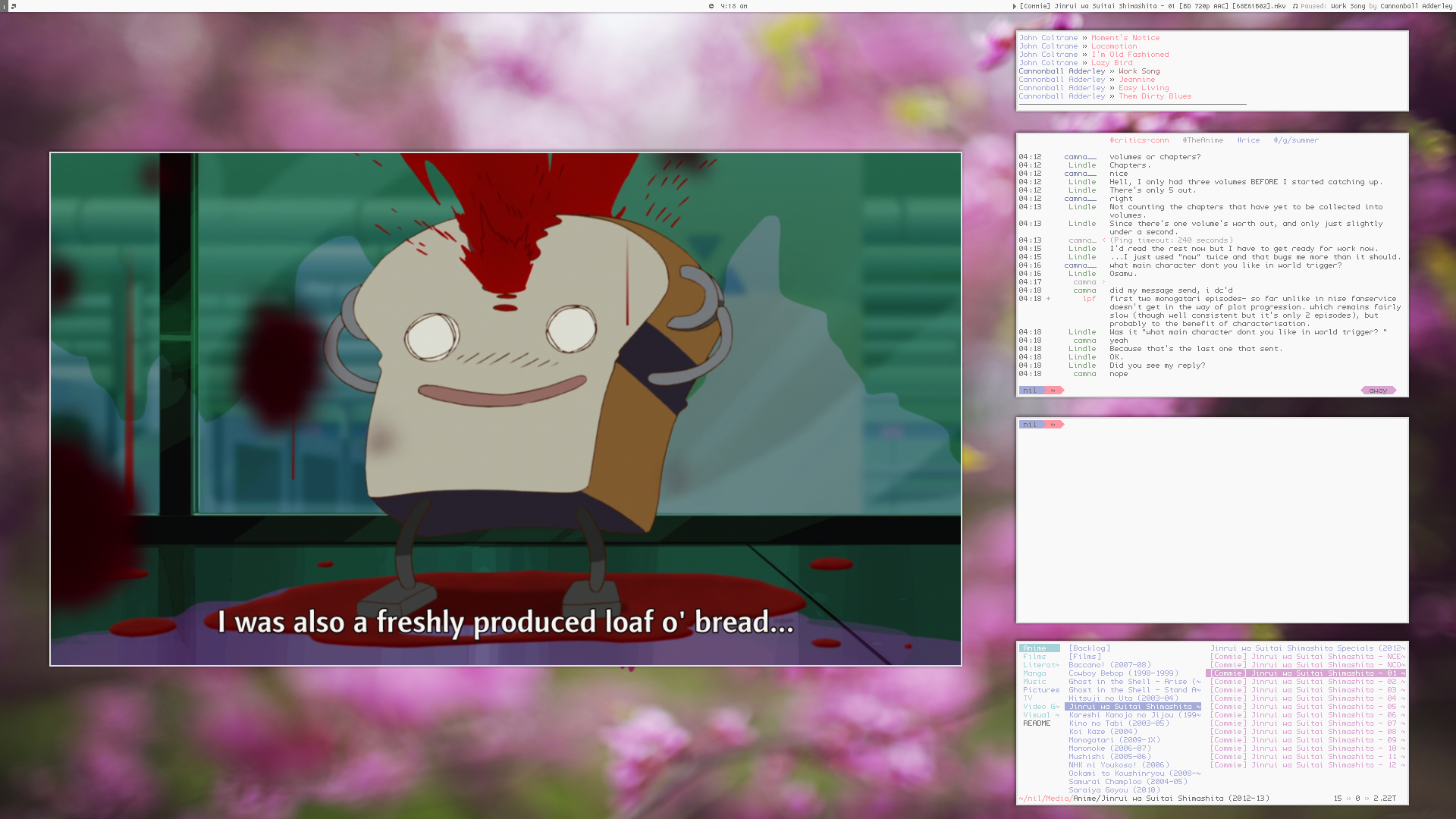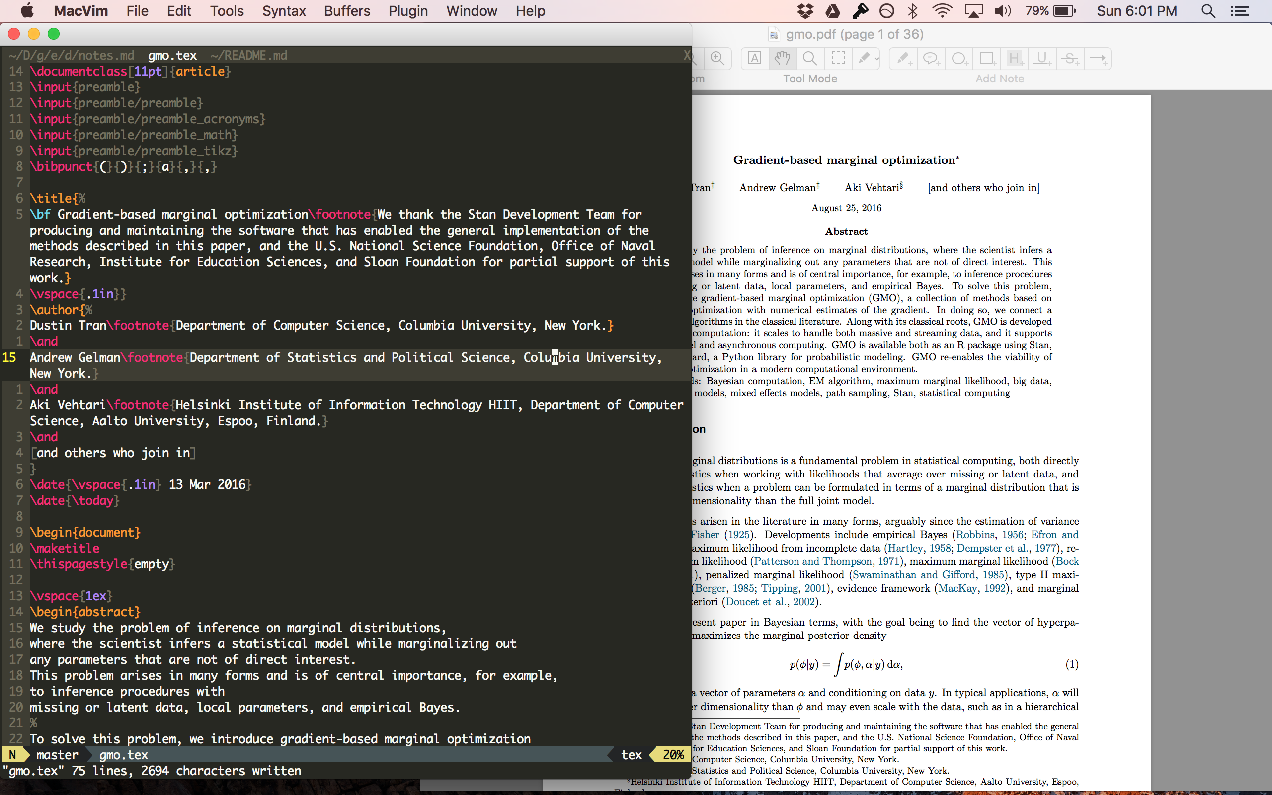 A demo of my typical workflow. A text editor and any PDFs are on my first desktop, followed by a browser in the second desktop, a terminal in the third desktop, and a papers app in the fourth desktop. Finally, my fifth desktop is empty, as it handles miscellaneous applications.