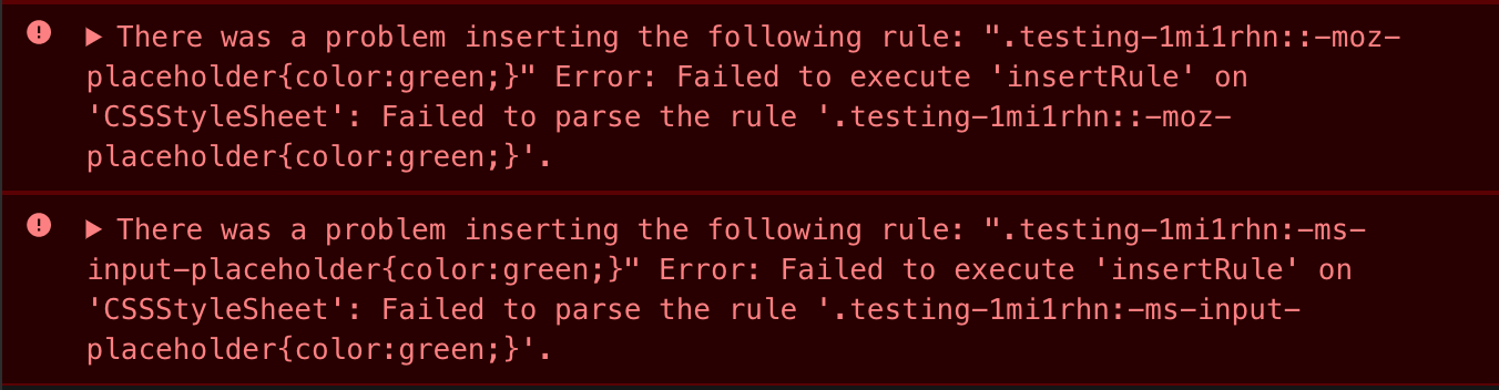 When using the '&::placeholder' selector on Chrome with the sheet in "speedy" mode (i.e. using the insertRule() API), Chrome throws errors that it can't insert the ::-moz-placeholder and ::-ms-input-placeholder rules.