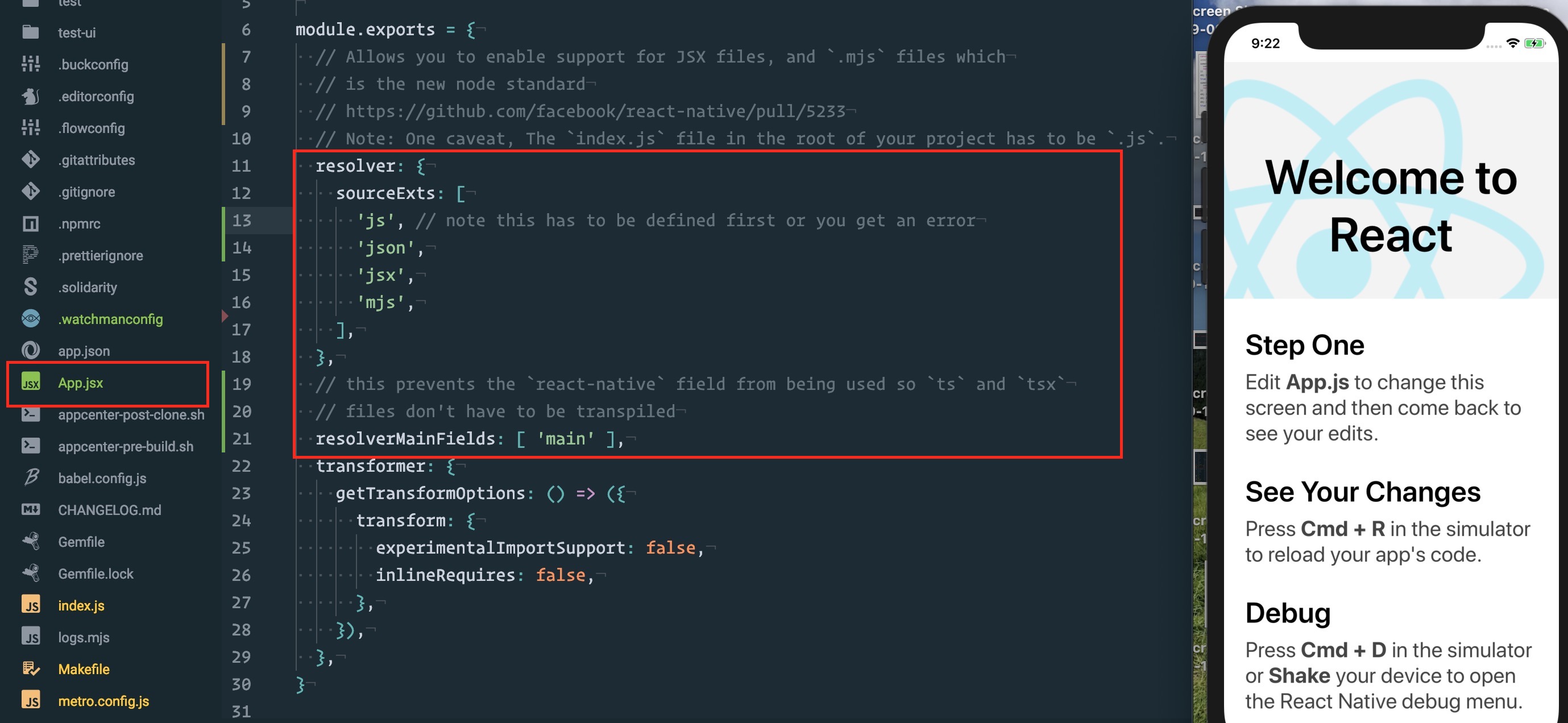 getSourceExts: () => [ 'jsx', 'mjs', 'js' ],