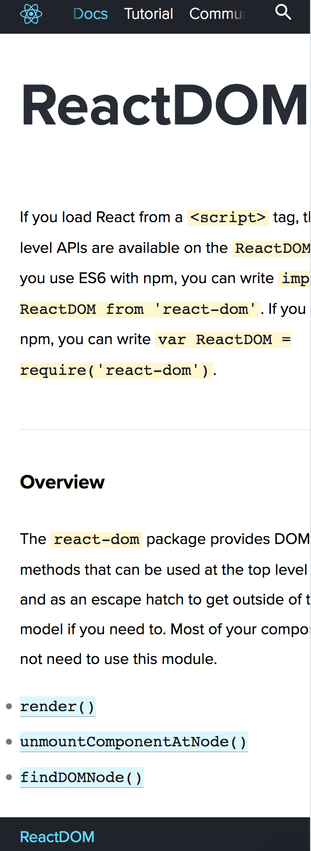 **what is the change?:** - Adds media queries and JS to make sidebar collapse/expand from a sticky bottom bar on small screen sizes - Many TODOs still open! This is just an initial version. **why make this change?:** Moving closer to Joe's fantastic design. :) **test plan:** Manual testing - Flarnie will insert a gif **issue:** Various items under the `Sidebar Component` on this checklist; https://github.com/bvaughn/react/wiki/Gatsby-check-list