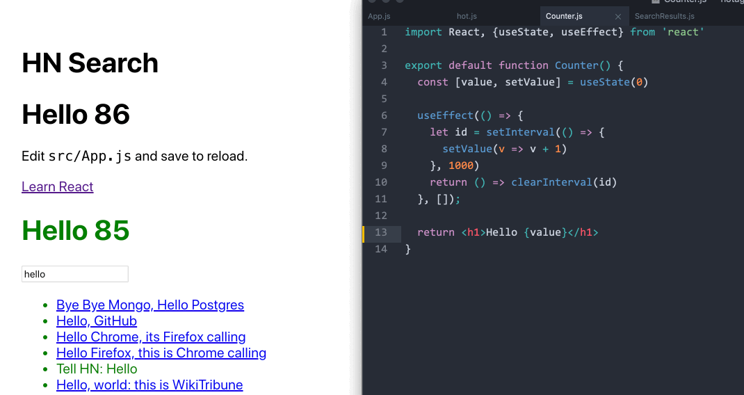 scheduleHotUpdate:This is an array of host nodes which can be used by the hot reloading runtime to show visual feedback related to the edited UI. Here's a gif to give you an idea of a possible way to use this. Note how the updated components are briefly highlighted in the browser right after edit: