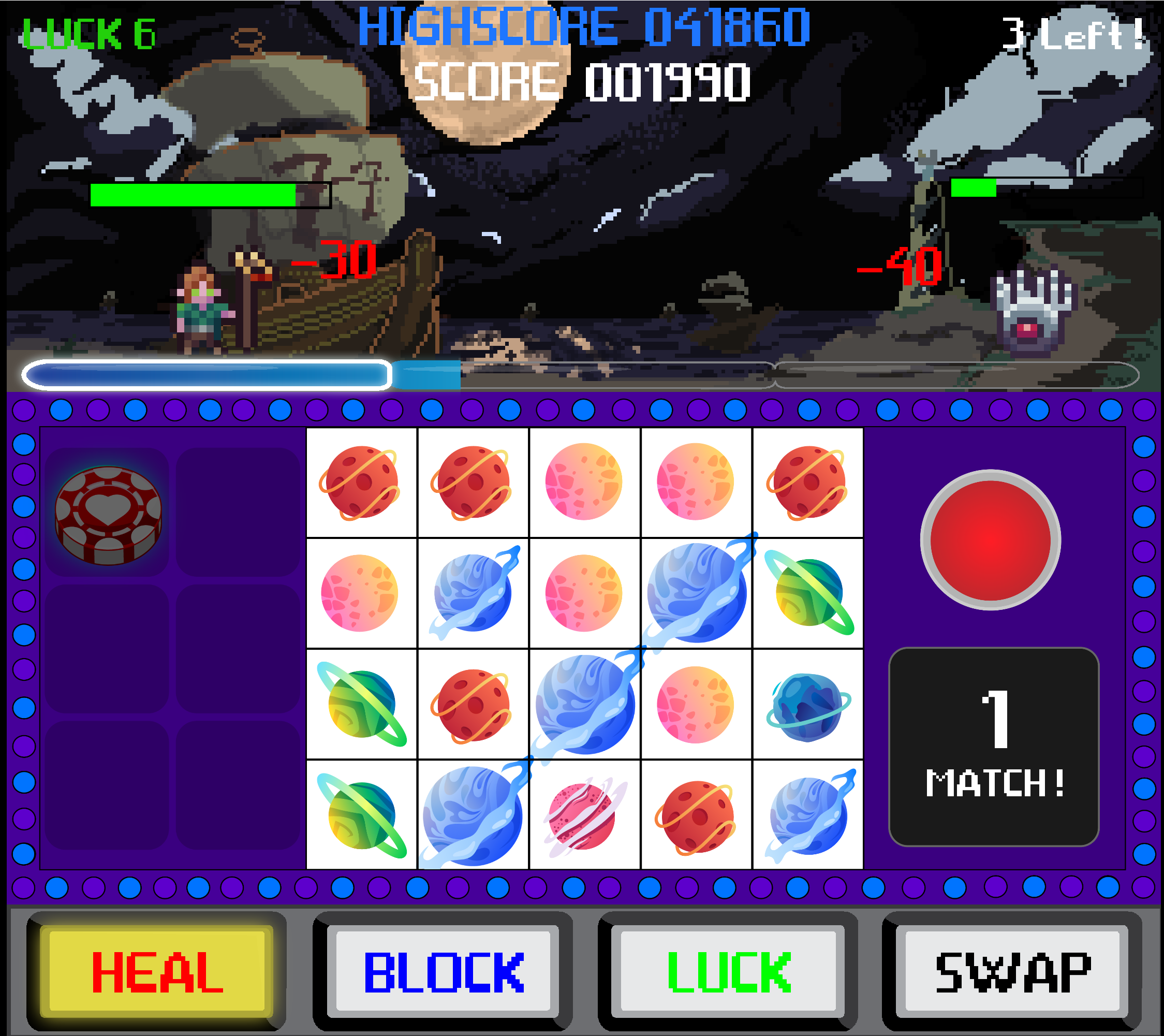 Character pixel art by DeepDiveGameStudio! Pixel Art for levels 2, 3 & 5 by Joe Gallegos!